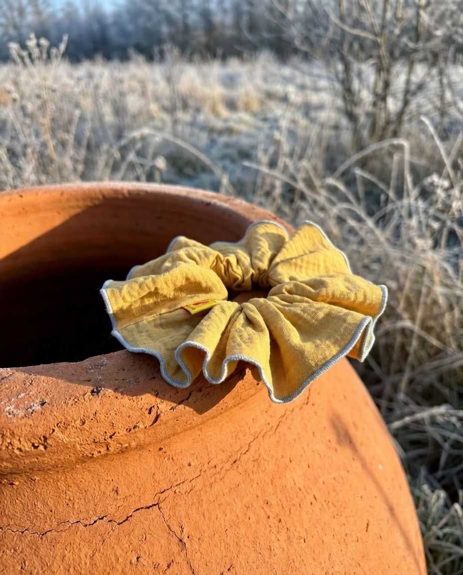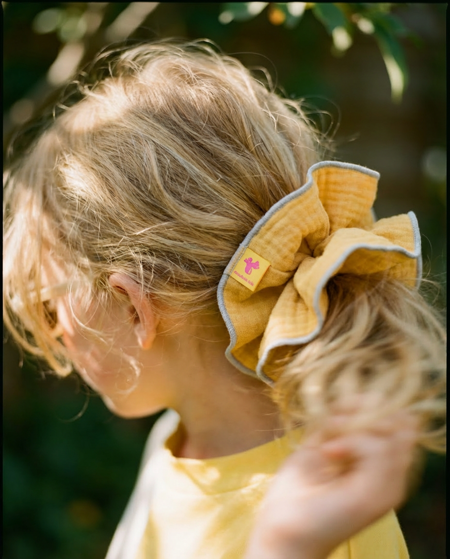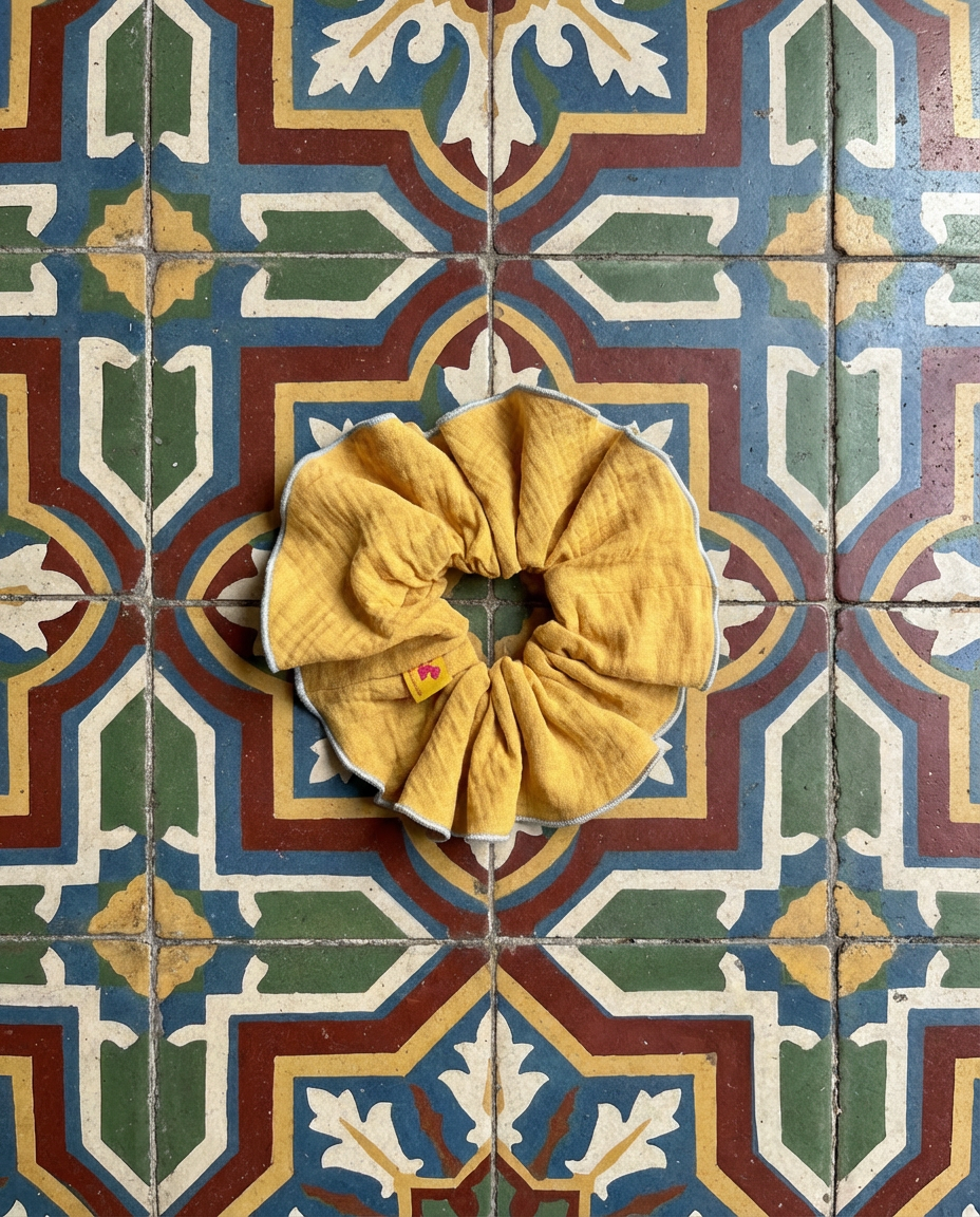 Hecho en muselina 100% algodón, suave y ligera, con ese fruncido amplio que lo convierte en un gesto alegre, casi floral. Perfecto para mamás, peques o cualquiera que quiera añadir un toque de color a los días de invierno (o de verano con sol).