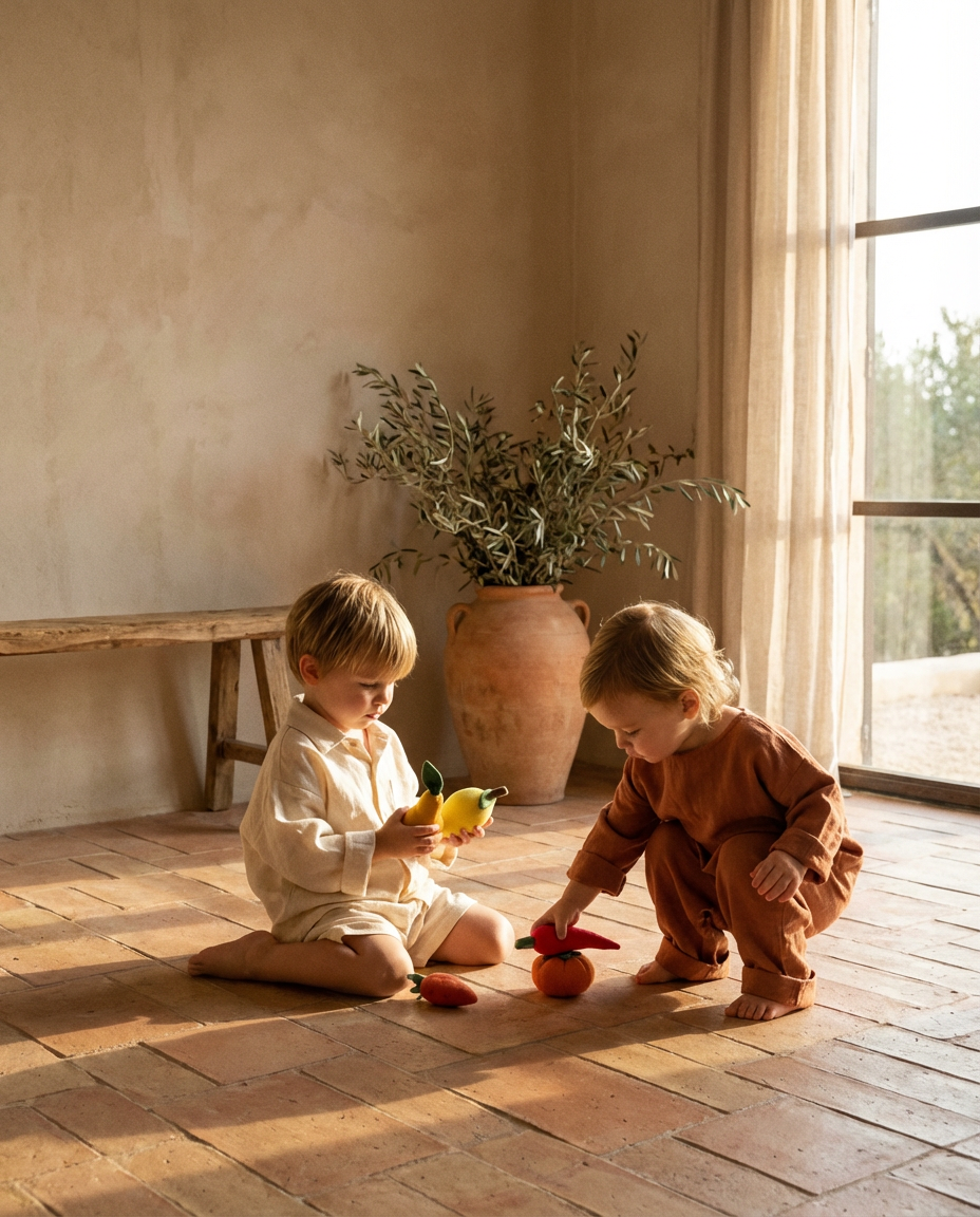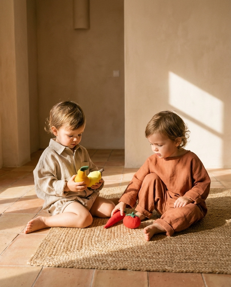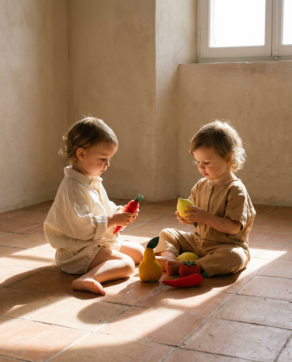With these fabric toys, children can learn to count, learn the names of fruits and vegetables, and play everywhere: in the garden, in their room, and in the kitchen.