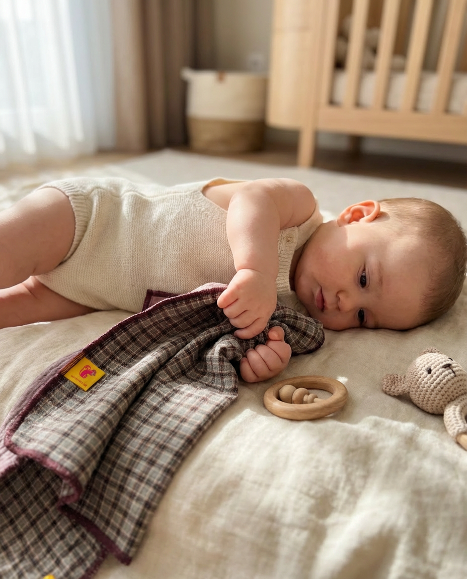 La muselina de 70 × 70 cm, ligera y versátil, completa el pack como ese imprescindible que siempre está.