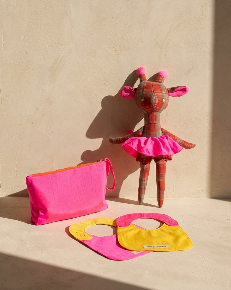 – Neceser fucsia para guardar tesoros (o galletas). Medidas: Cuerpo 26cm × 17cm x 6cm (asa 14,5cm)