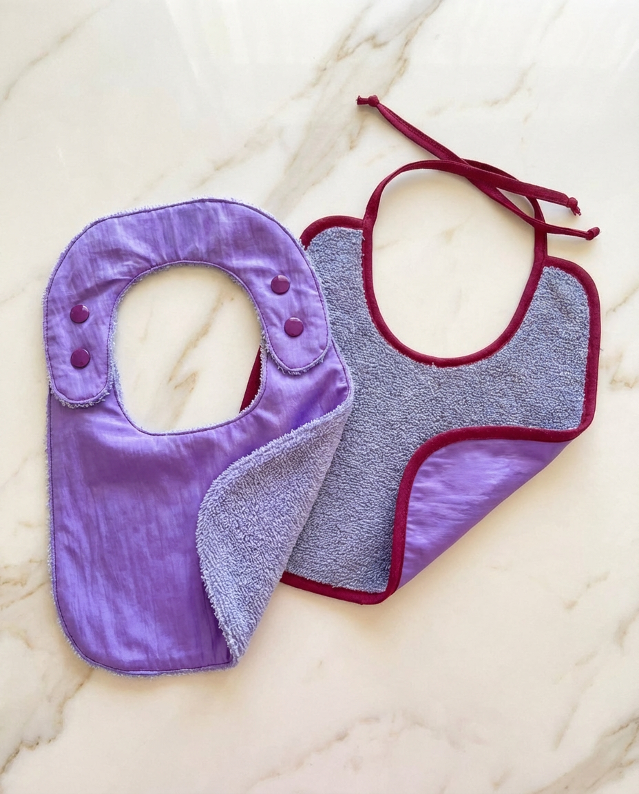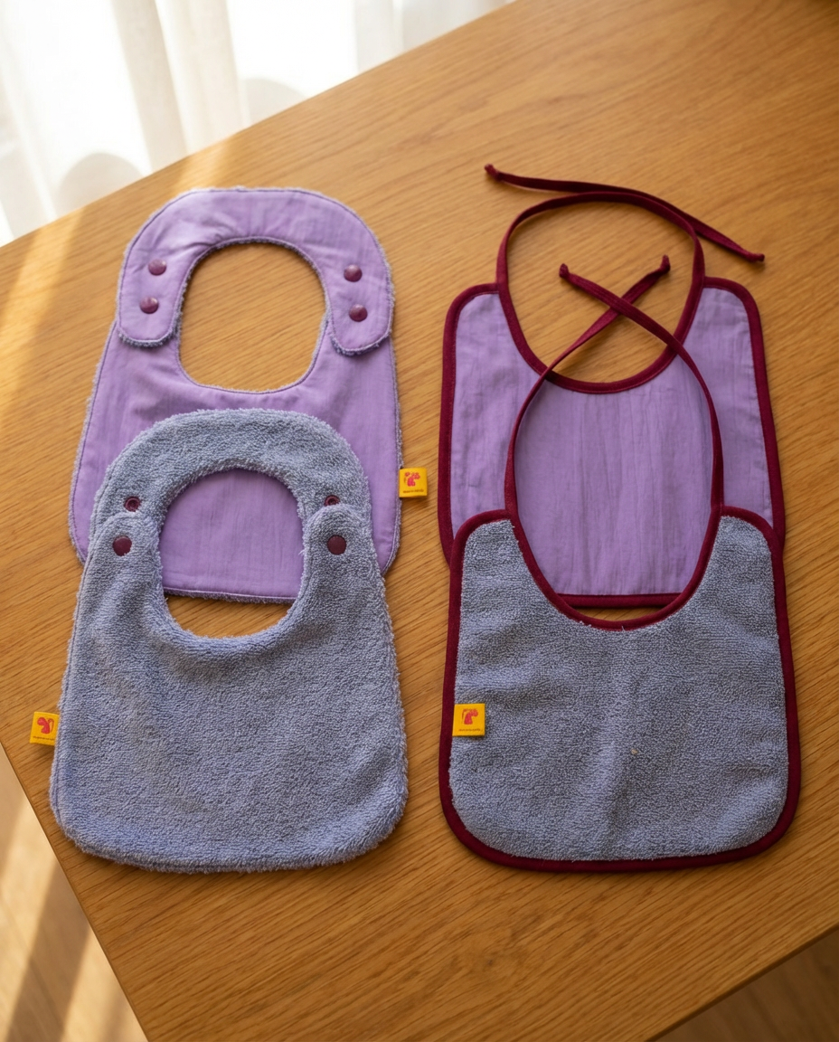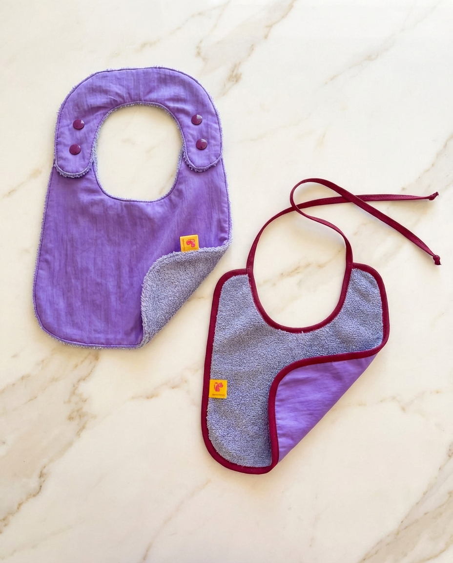 Este pack reúne dos baberos reversibles, pensados para acompañar el ritmo real de las comidas, sin renunciar al diseño.