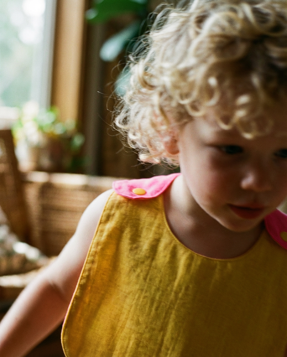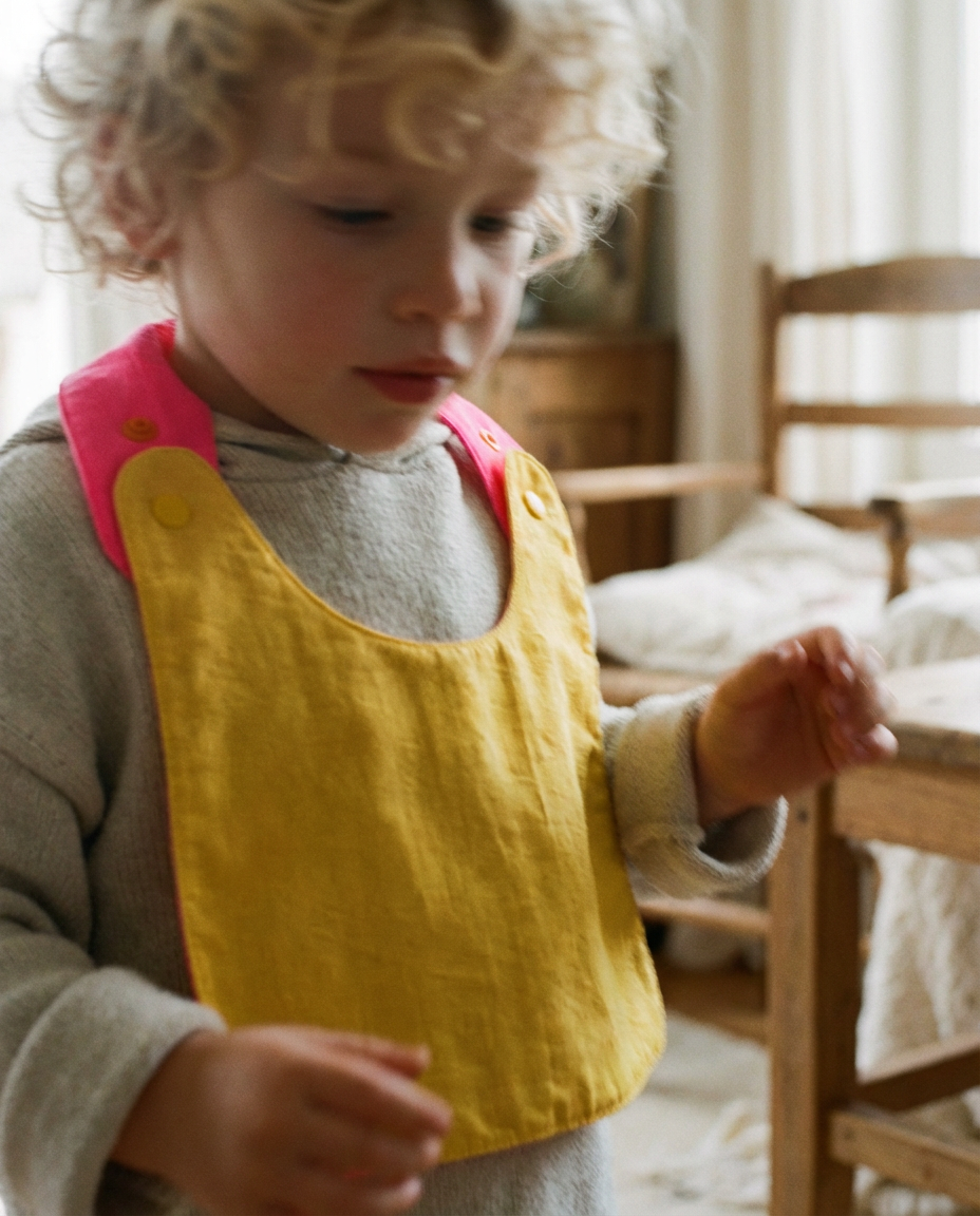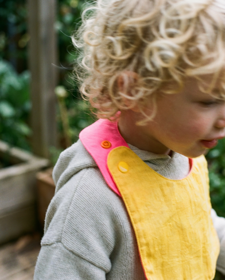 Babero reversible amarillo/fucsia