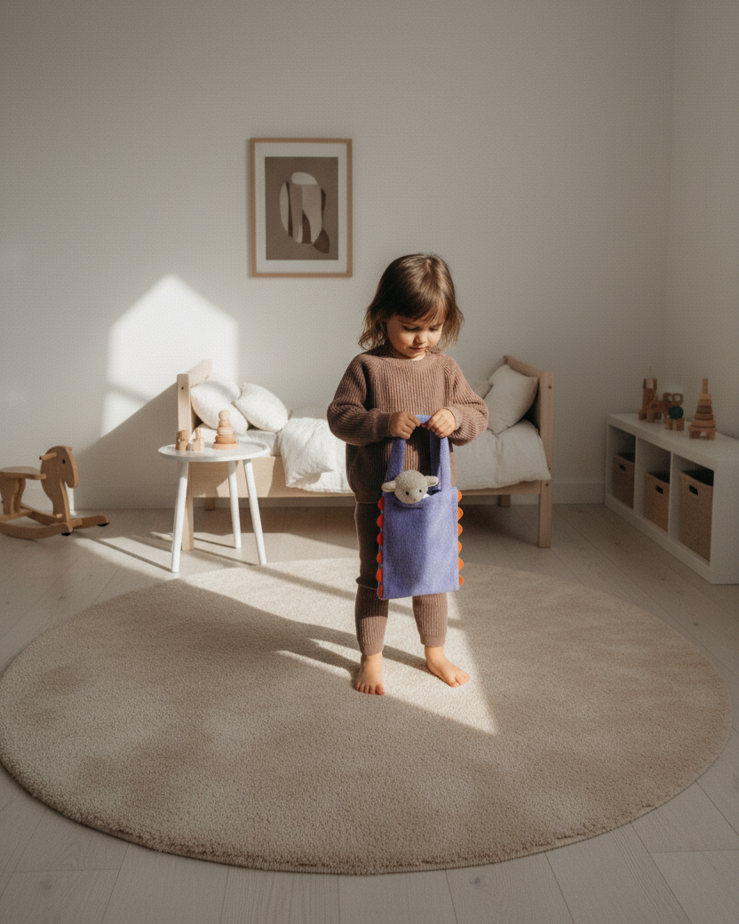 Confeccionado en rizo de algodón suave, con ondas laterales en contraste, es ligero pero con mucha personalidad. Perfecto para llevar juguetes, libretas, tesoros encontrados en el parque… o simplemente para colgar en la habitación y que siempre esté ahí, como un guiño divertido en la decoración.