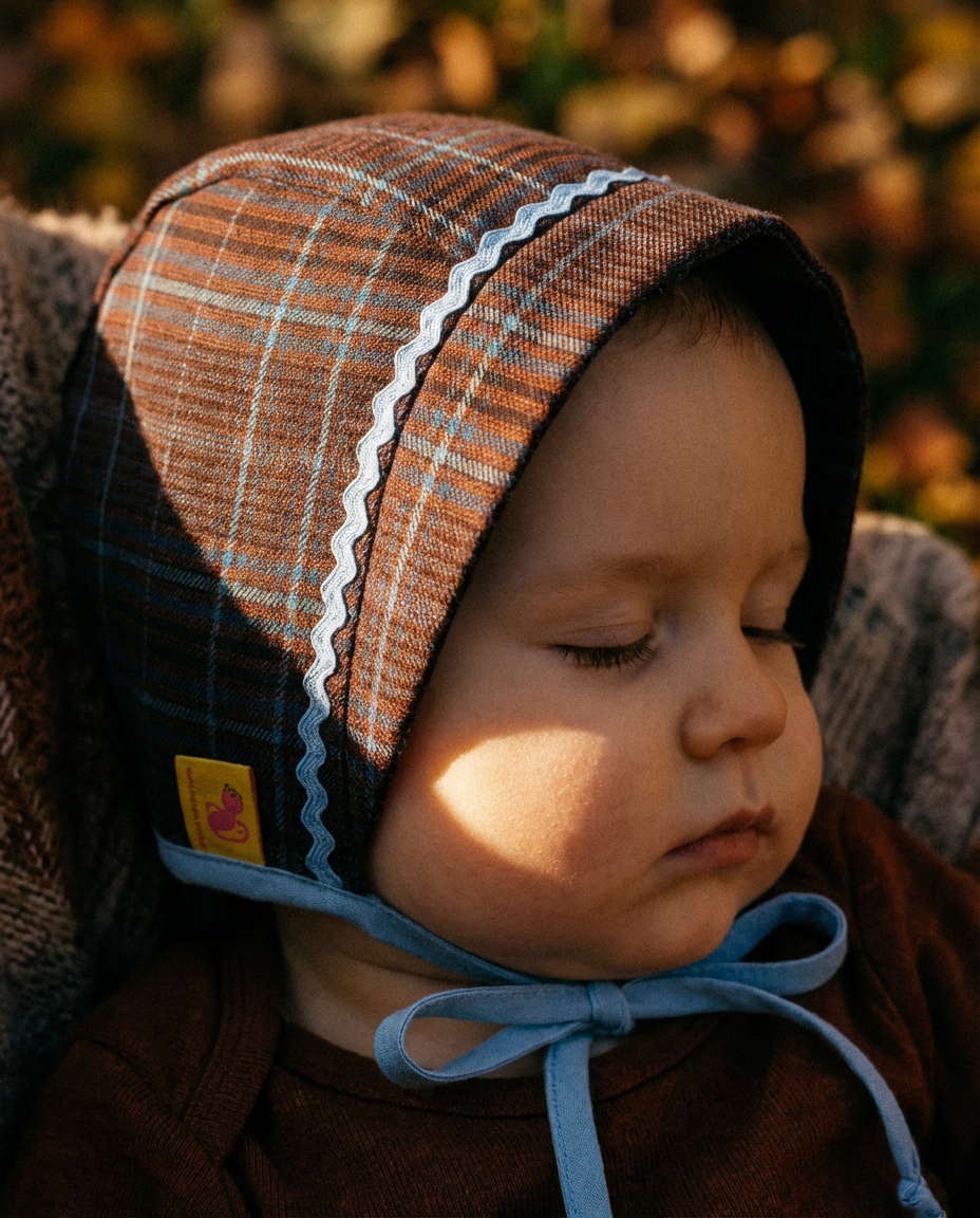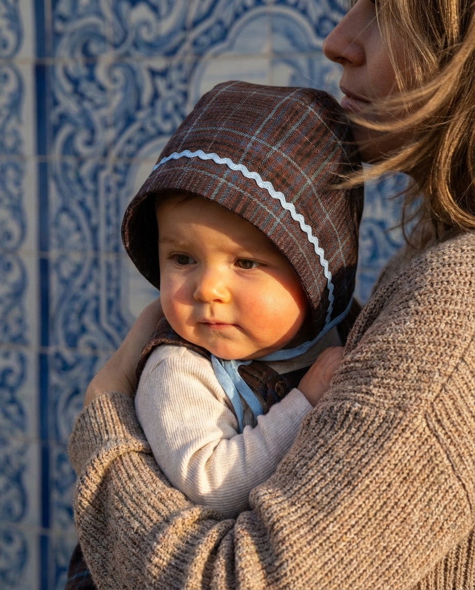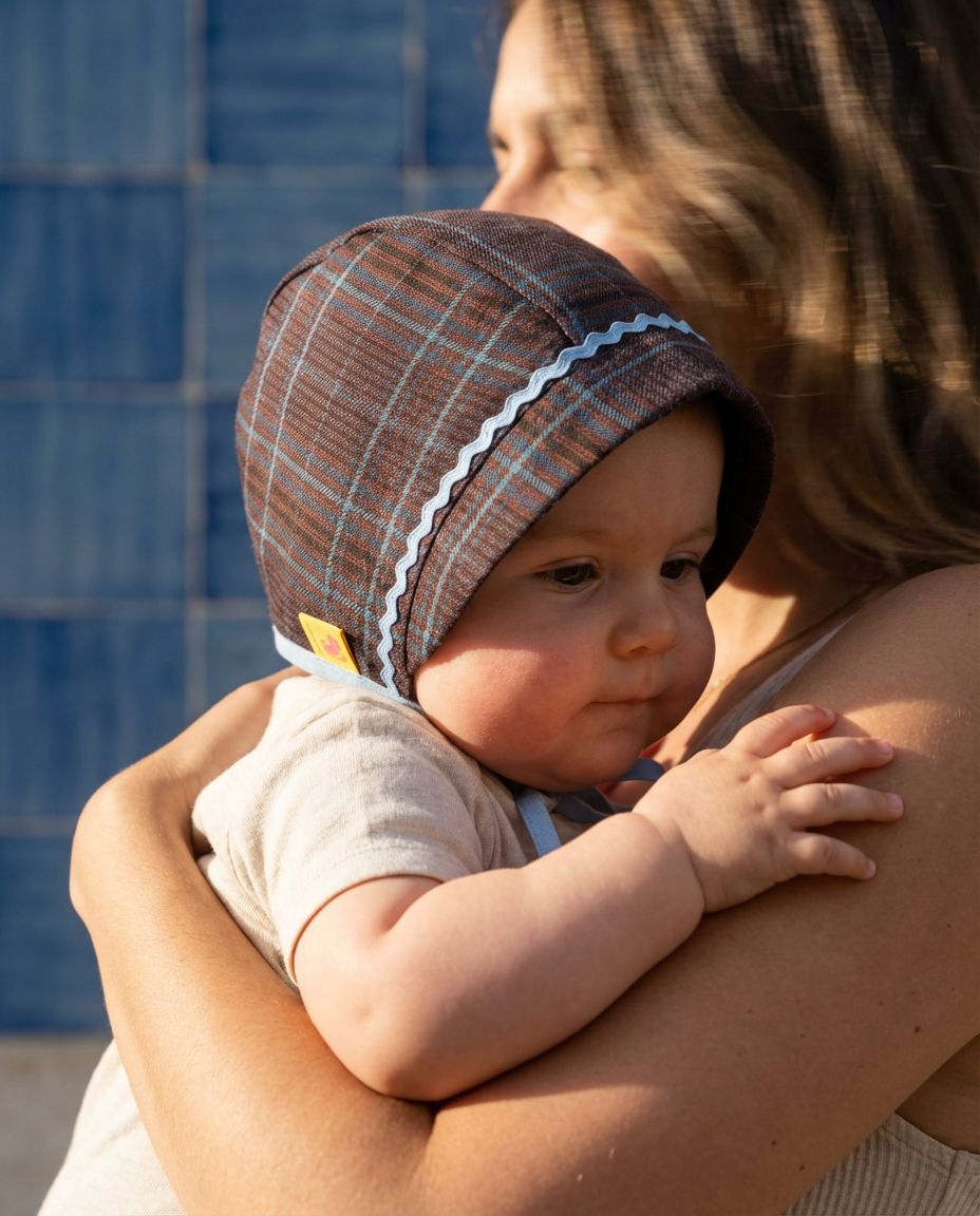 Nuestro bonnet de cuadros está diseñado para acompañar los días frescos con estilo, ternura y ese toque editorial que define el universo Macadamia.