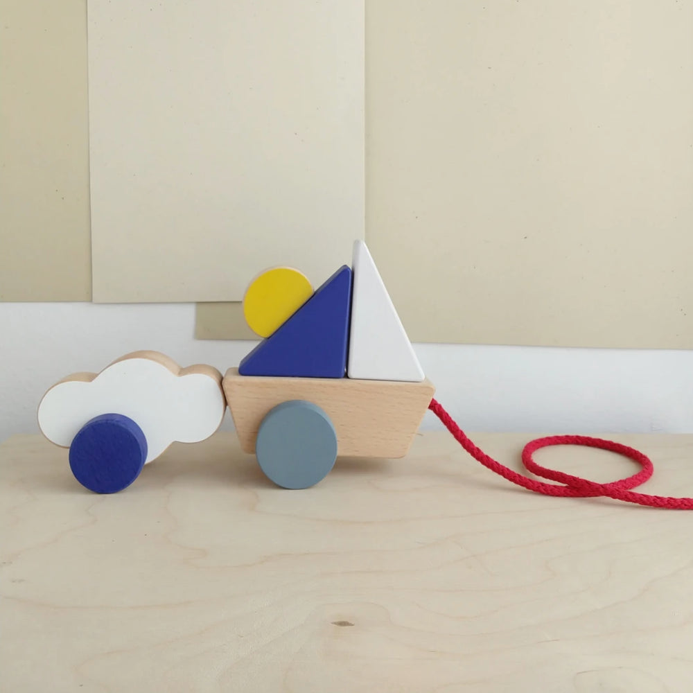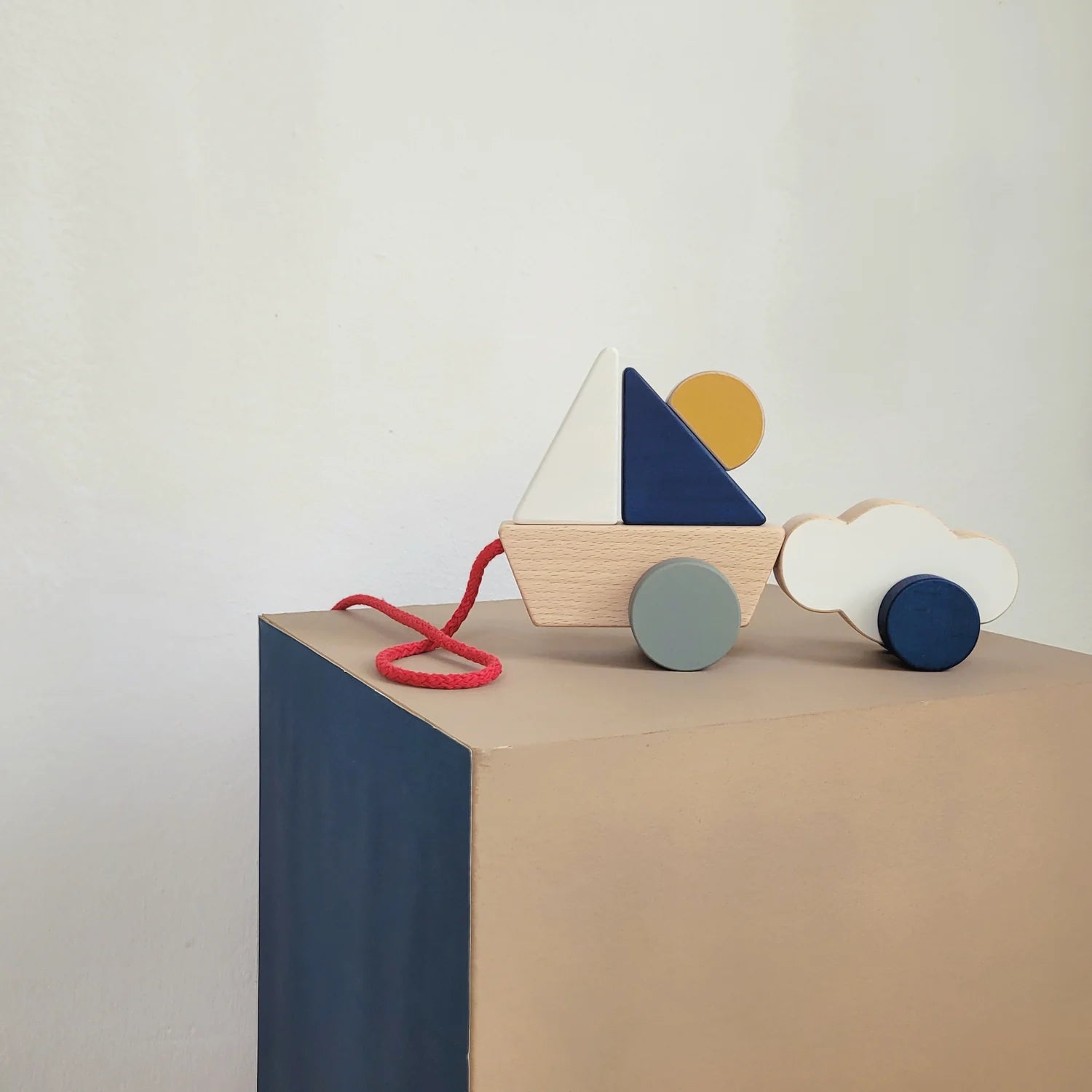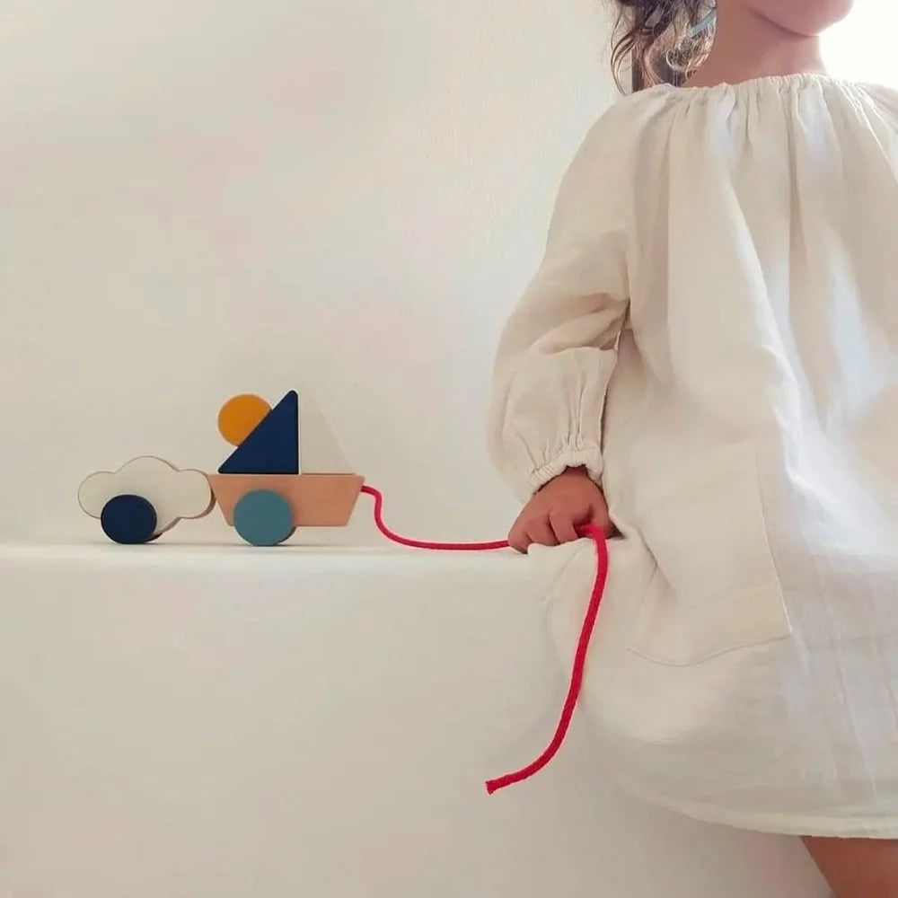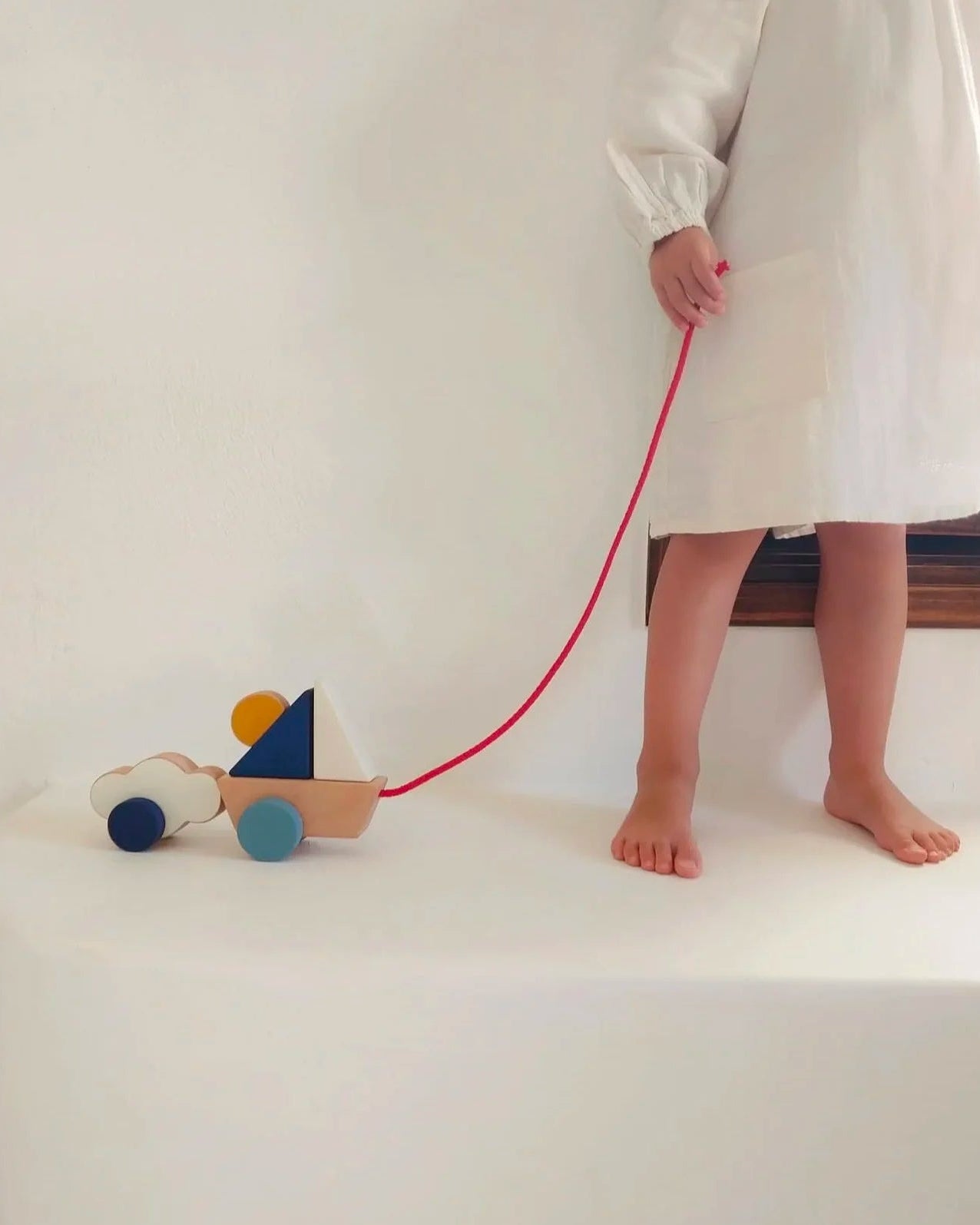 Este juguete de arrastre de The Wandering Workshop es para los mini exploradores que ya caminan y quieren que sus aventuras tengan tripulación.