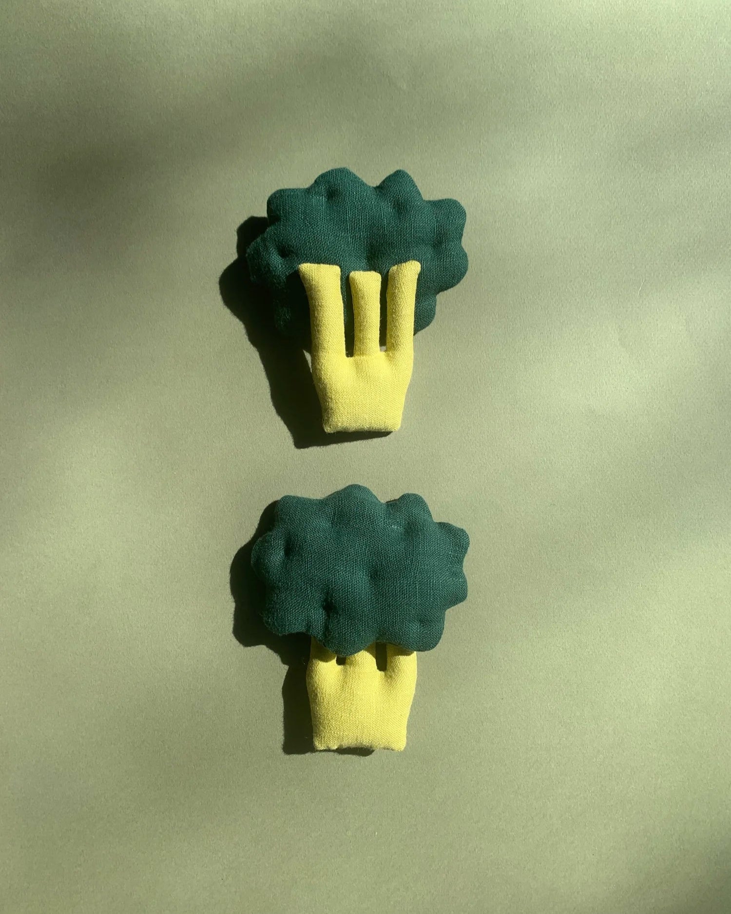 Este brócoli de lino, suave y mullido, es perfecto para inventar comidas llenas de vitaminas imaginarias, preparar banquetes de cuento o decorar una cocina de juguete con un toque divertido.