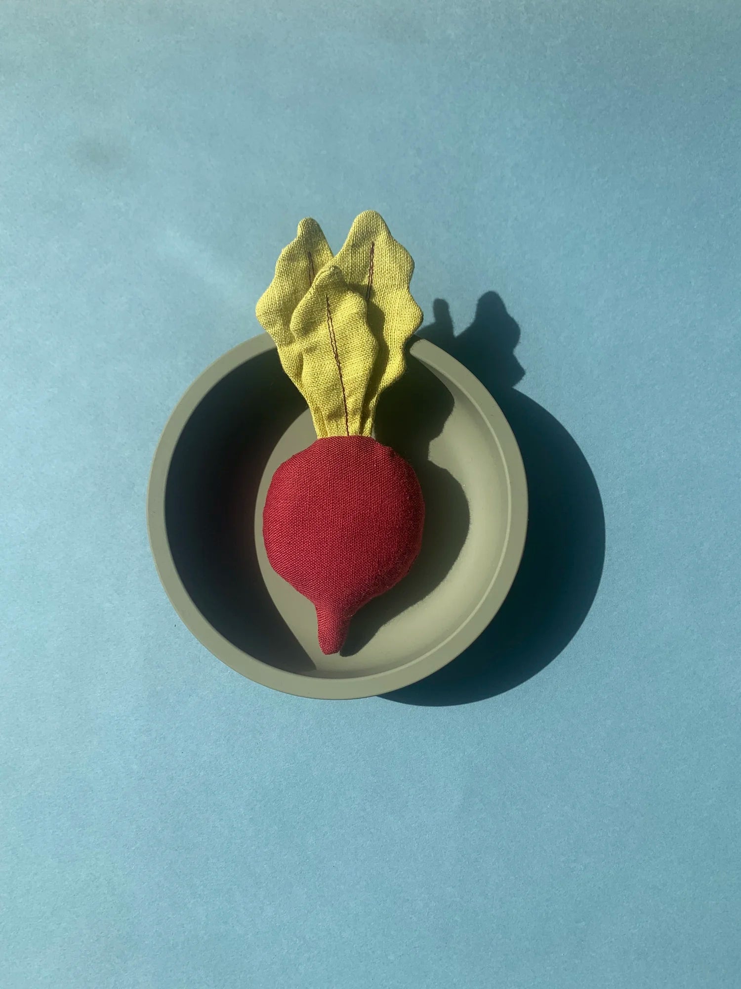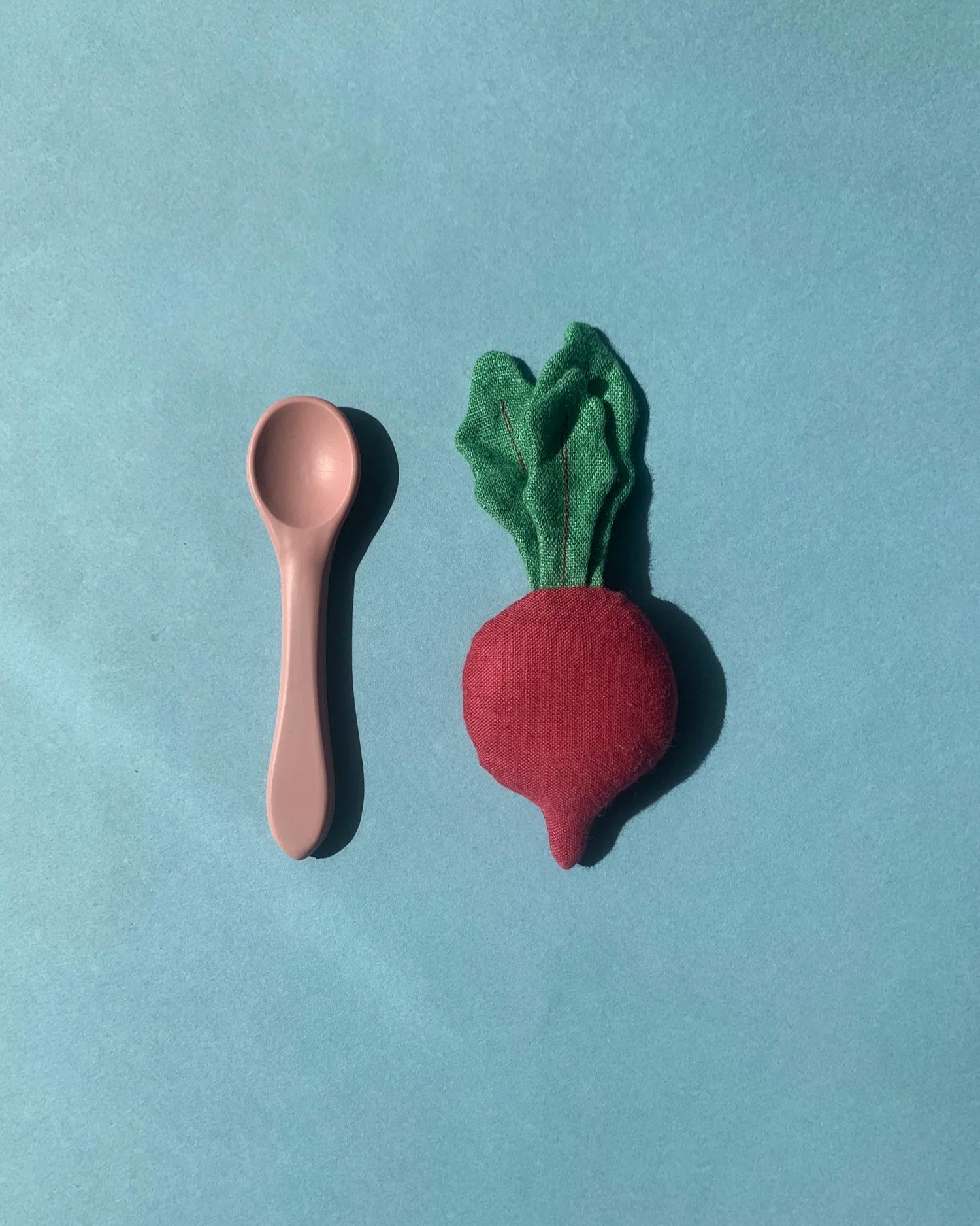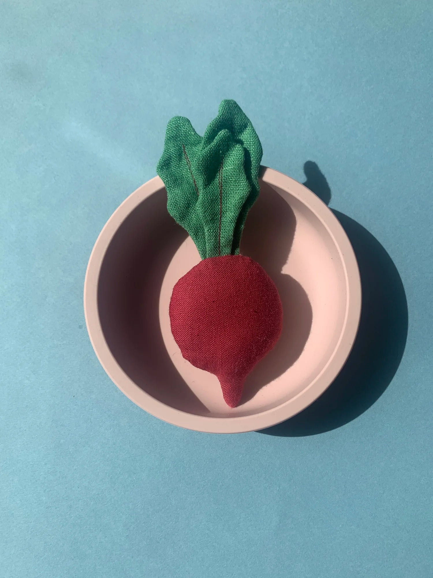 Suave, ligera y divertida, esta remolacha de tela es perfecta para jugar a las cocinitas, inventar mercados imaginarios o decorar la habitación con un toque natural.