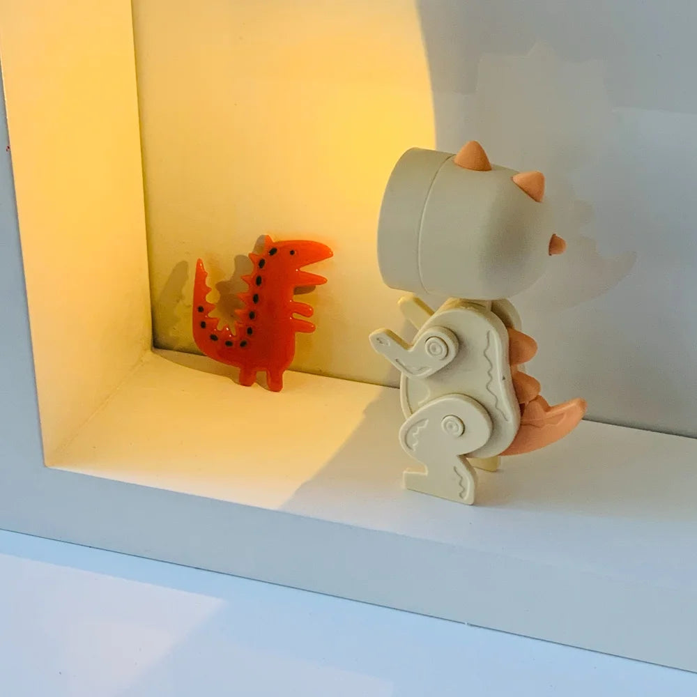 Con su forma de dinosaurio simpático y valiente, esta linterna no solo da luz: da seguridad. Se convierte en un aliado fiel que espanta miedos y transforma la oscuridad en un escenario de juego y tranquilidad.
