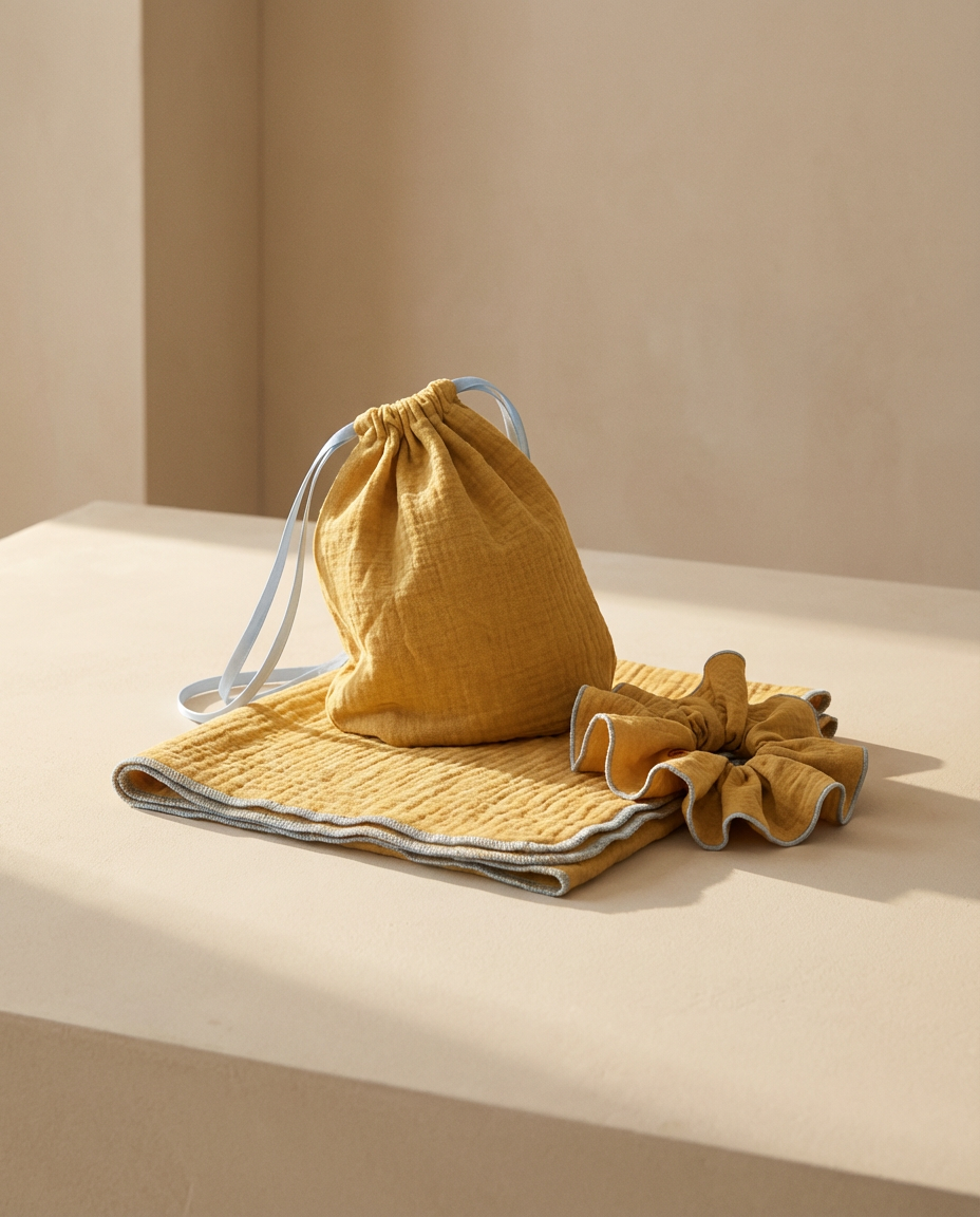 Este pack reúne tres piezas ligeras y coordinadas pensadas para acompañar sin ocupar, para sumar calma y belleza a los gestos más cotidianos. Tejidos suaves, tonos cálidos y formas sencillas que encajan sin esfuerzo en cualquier momento.
