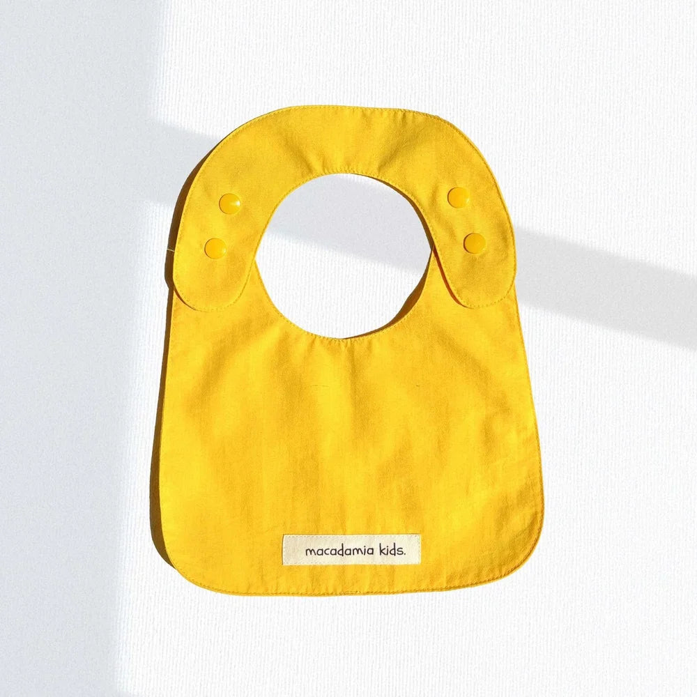 🍋 Babero amarillo Macadamia Kids: Con doble cara y cierre de clicks. Fabricado cerca de Barcelona por manos expertas, pensado para acompañar aventuras que empiezan en el plato y acaban quién sabe dónde. Color: amarillo limón. Tejido 100% poliéster.