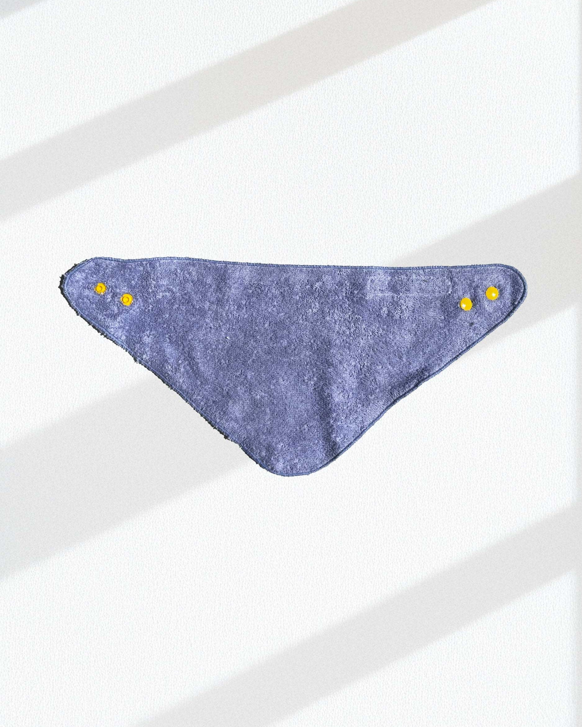 Babero bandana toalla lila con clicks amarillos (para paseo y babitas).