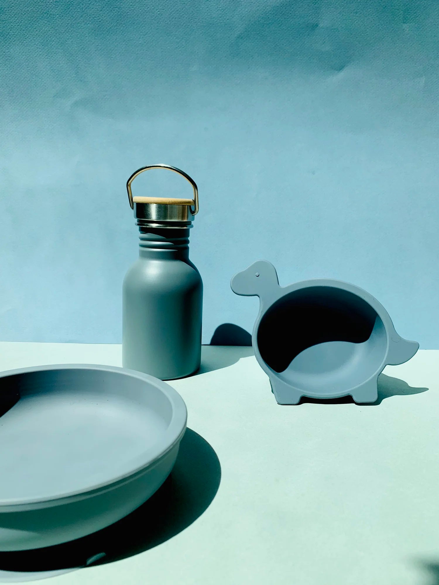 Hecho de silicona 100% alimentaria, suave y segura, este plato con forma de dinosaurio convierte cada comida en una aventura.