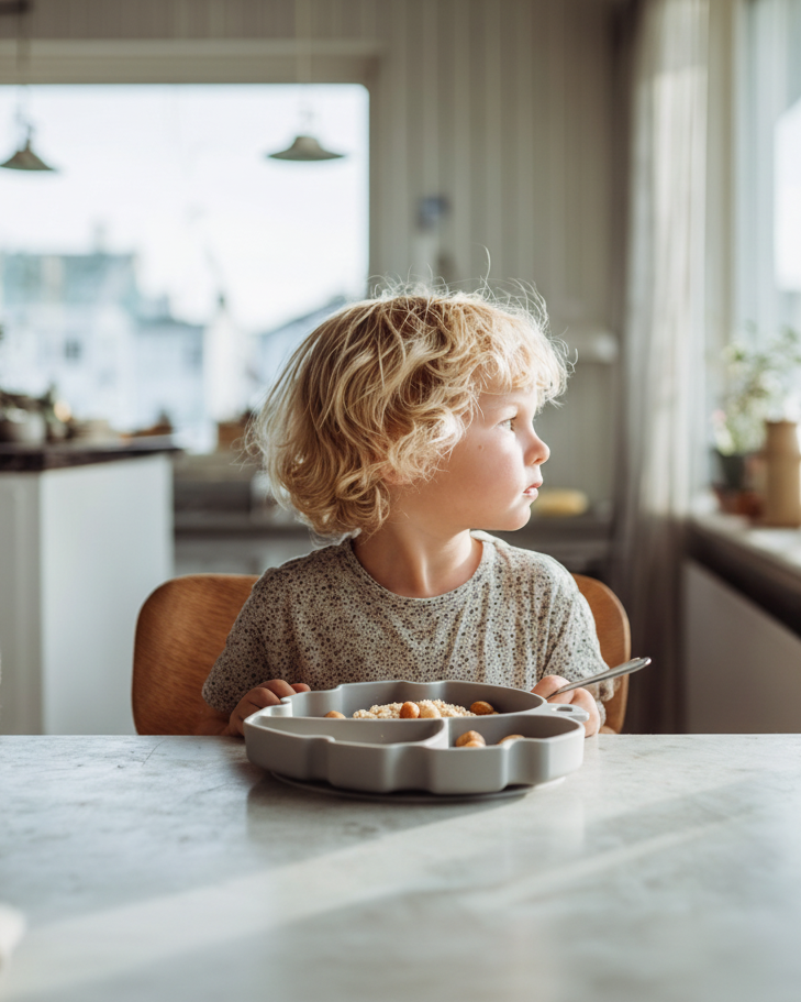 Su ventosa en la base mantiene el plato firme en la mesa, evitando vuelcos y caídas, y sus tres compartimentos ayudan a presentar los alimentos de forma variada y atractiva para el peque.